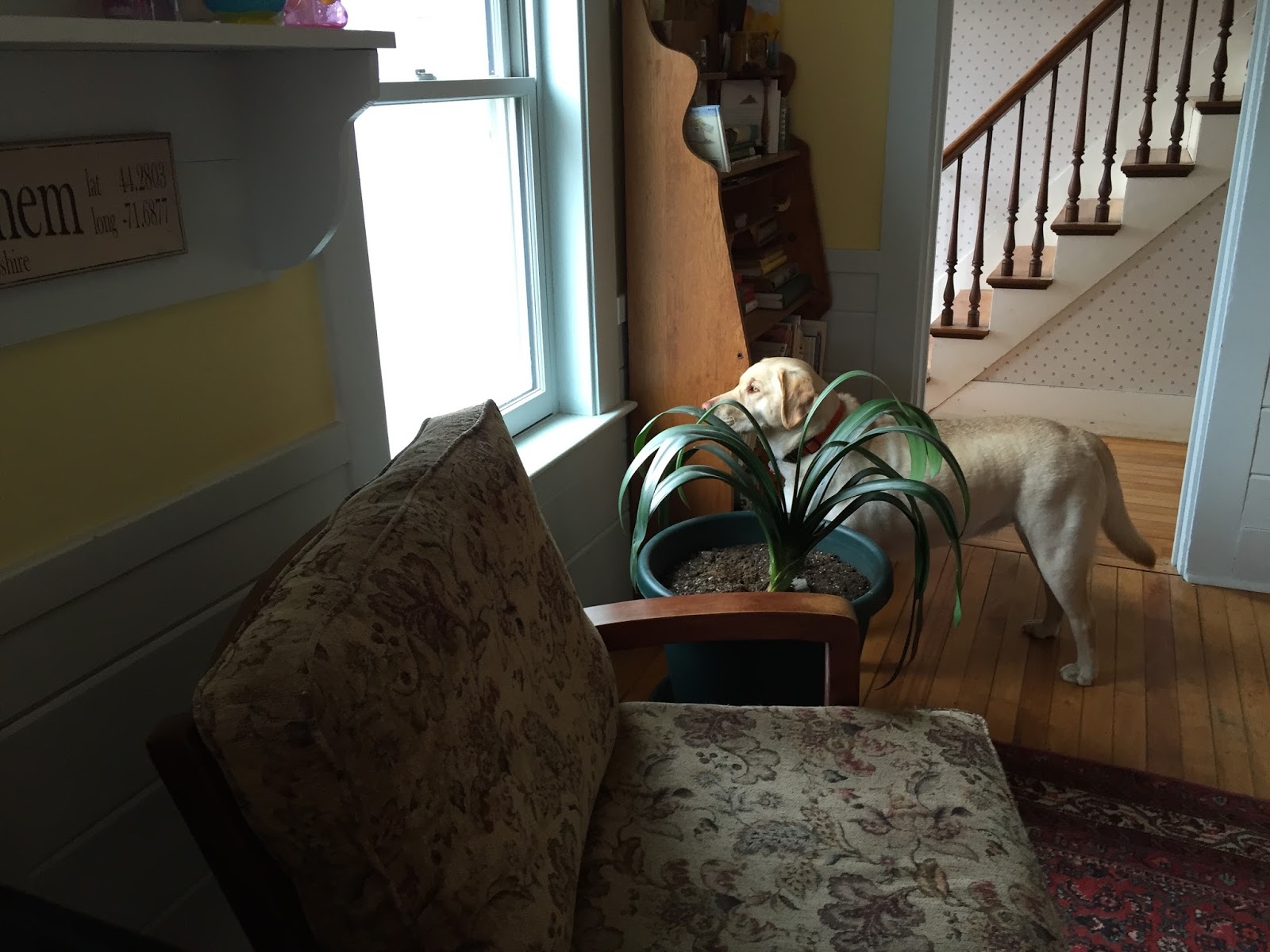 By April 19, when Hazel Nina came for the day, Tom had used the tractor to put manure on the old lawn, and we experienced for the first time the joy we knew we would feel at being able to go into the house without being accompanied by the exuberant Miss Lucy. What a difference this little change has made in our stress levels! Now anyone can come, and we just let Lucy out the kitchen door, and people can come right in the front door.